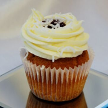 A vanilla cupcake will with lemon. Topped with a lemon buttercream icing.