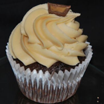 A chocolate cupcake filled with p’nut butter filling. Topped with a p’nut butter buttercream icing.