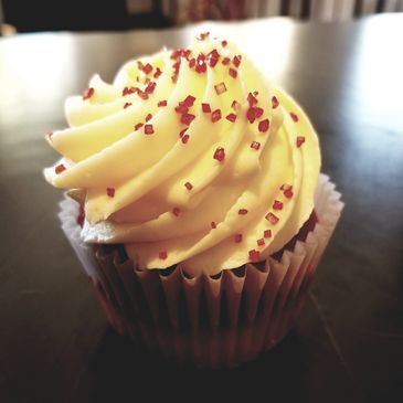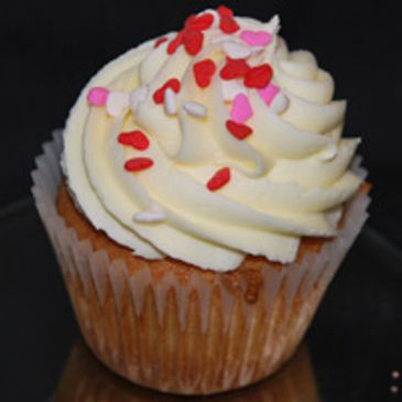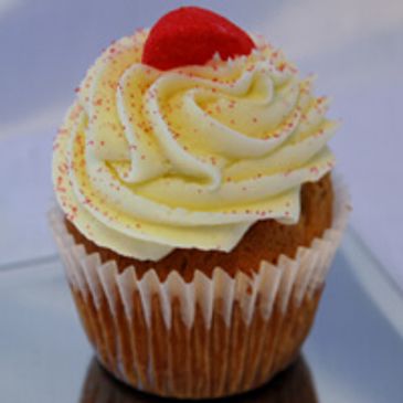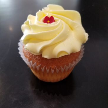 A simple, decadent vanilla cupcake. Topped with vanilla buttercream