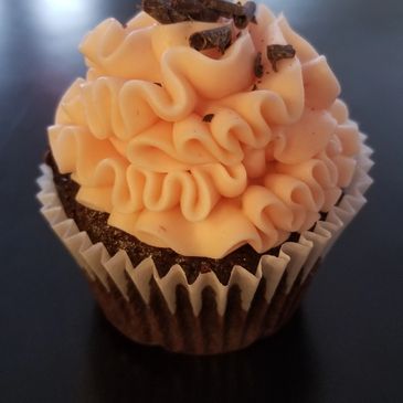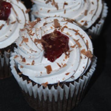 Chocolate cupcake filled with raspberry (can also do strawberry). Topped with raspberry buttercream icing
